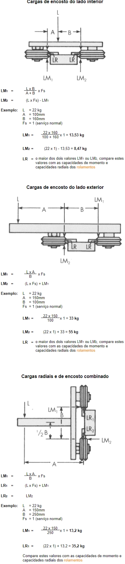 LM = Carga de momento sobre o rolamento (kg);