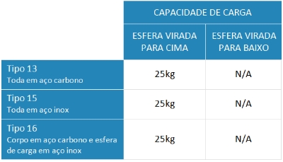 (corpo em aço carbono e esfera de carga em inox), apresentando ótimo desempenho nos mais variados ambientes de
