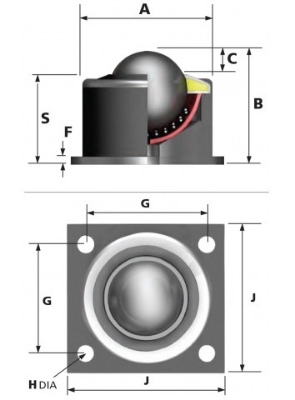 A esfera transferidora modelo 0519-24, possui esfera de carga de Ø12,7mm e uma flange quadrada de 35 mm na