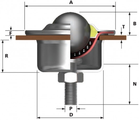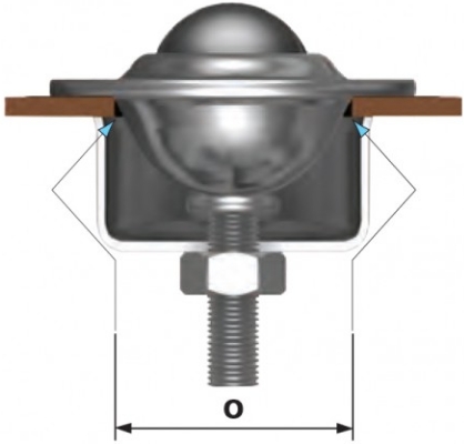 Esta esfera transferidora de Ø25,4mm, pode ser fixada em materiais de 1mm a 10mm. O torque máximo é de 15Nm. Pode ser especificado com um orifício de saída de sujeira. Disponível em vários materiais.