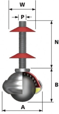 Esfera transferidora de Ø25,4mm, utilizada para fixação em tubo. A fixação no tubo é obtida quando empurramos