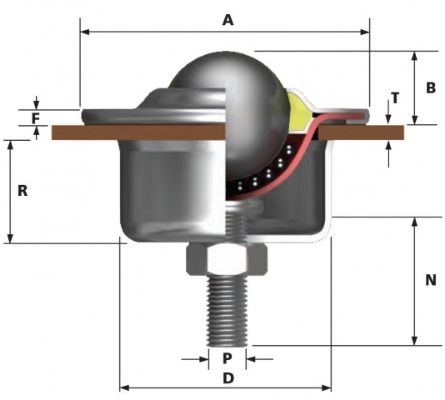 Esta esfera transferidora de Ø31,7mm, pode ser fixada em materiais de 1mm a 27mm. O torque máximo é de 20Nm. Pode ser especificado com um orifício de saída de sujeira. Disponível em vários materiais.