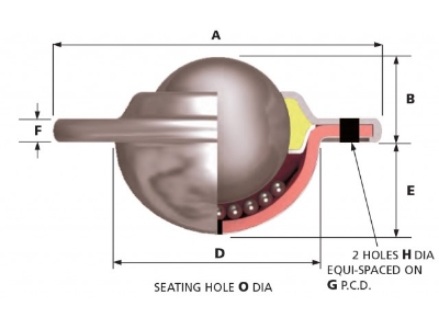 Esfera transferidora em aço estampado, de uso geral, com esfera de carga Ø31,7 mm, perfil baixo e vários