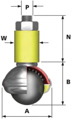 Esfera transferidora de Ø39,7mm, utilizada para fixação em tubo. A fixação no tubo é obtida quando empurramos