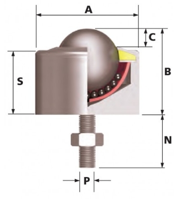 A esfera transferidora modelo 3019-23, possui esfera de carga de Ø19mm e parafuso M8. Poder ser fabricada nos