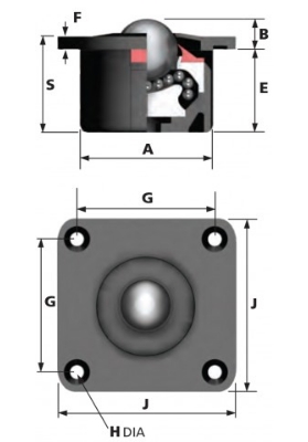 As esferas transferidoras modelo 6025-2, possuem uma flange superior com quatro furos para fixação, são fabricadas com alta tecnologia, possuem corpo em um nylon especial, reforçado com vidro. Podem ser solicitadas com os demais componentes em aço carbono ou aço inox. Apresenta ótimo desempenho nos mais variados ambientes de trabalho. Alta resistência a solventes orgânicos, gasolina e óleo. Pode ser solicitada com orifício para saída de sujeira. Possui duplo raspador para minimizar a entrada de sujeira. Dimensionamento compatível com a série Peso Pesado 7125.