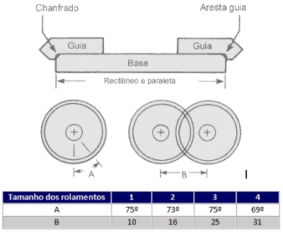 A aresta da superfície de montagem da guia deve ser chanfrada com aproximadamente 0,5mm x 45º, para acomodar o